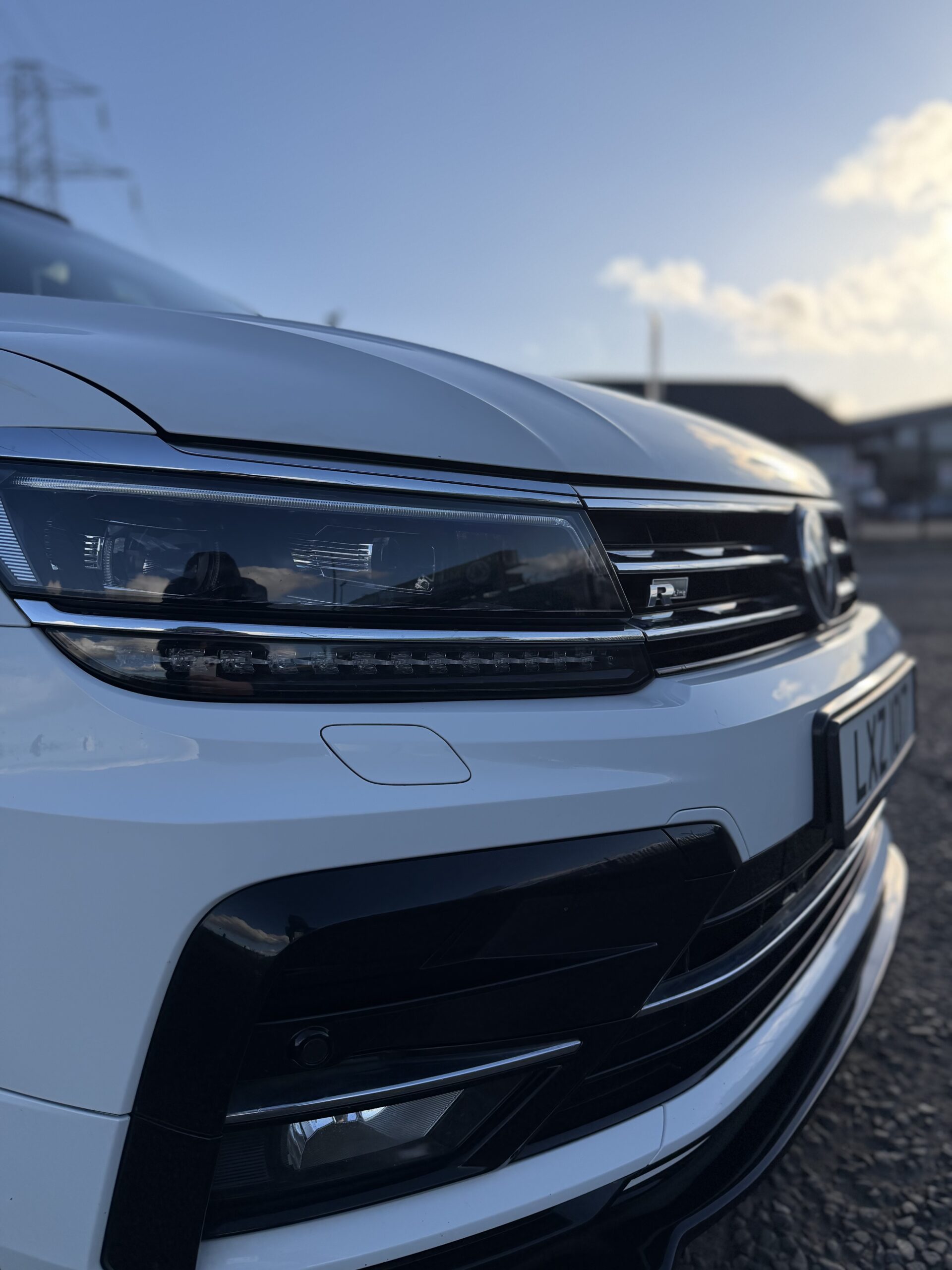 Stunning white R-Line 4Motion with contrasting black leather interior. Covering 111k miles from new, excellent service history with spec to include:
